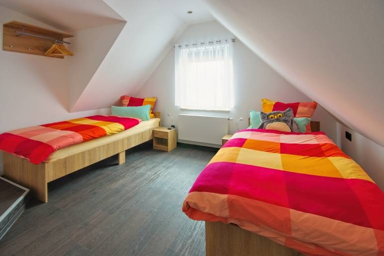 2 Betten je 90 x 200 cm, können zusammengestellt werden