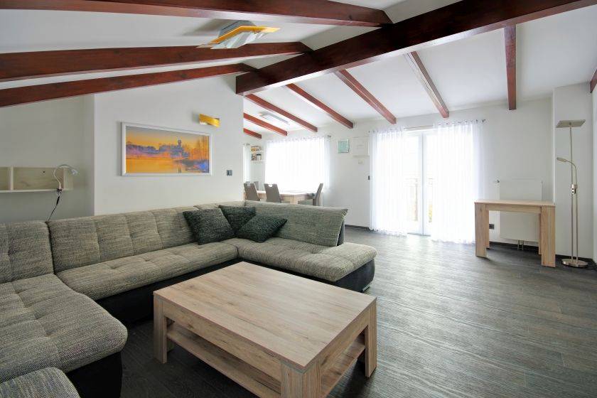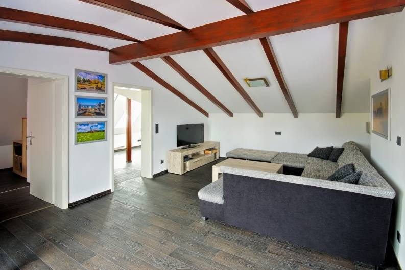 Fernsehecke: große Wohnlandschaft mit Bettfunktion, TV